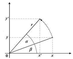 Вращения в плоскости перемещают точки по дуге окружности, центр которой находится в начале координат. Рассмотрим сначала движение одной точки при повороте на угол