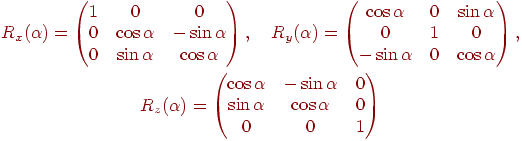 И наконец, повороты в пространстве относительно осей координат можно выполнить с помощью трех матриц вращения