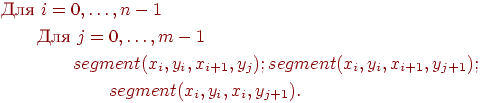 (верхний горизонт) размерностью, соответствующей горизонтальному размеру экрана в пикселях. Они нужны для анализа видимости участков изображаемых отрезков. Сначала мы инициализируем верхний горизонт нулем, а нижний - максимальным значением вертикальной координаты на экране. Каждая выводимая на экран точка может закрывать другие точки, которые "скрываются за горизонтом". По мере рисования нижний горизонт "опускается", а верхний "поднимается", постепенно оставляя все меньше незакрытого пространства. В отличие от метода художника, здесь мы продвигаемся от ближнего угла к дальнему. Теперь опишем алгоритм подробнее.