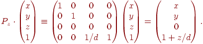 В однородных координатах такое преобразование можно записать с помощью двух операций. Сначала умножаем матрицу проективного преобразования