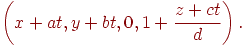 Теперь найдем точку пересечения этой прямой с картинной плоскостью. Она определяется из условия равенства нулю третьей координаты: