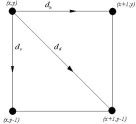 , выбираем диагональный шаг, в противном случае - вертикальный. Затем вычисляется новое значение