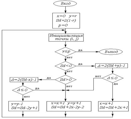 Рис. 8.8. Блок-схема построения восьмой части окружности