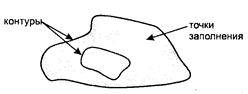 Фигурой здесь будем считать плоский геометрический объект, который состоит из линий контура и точек заполнения, которые помещаются внутри контура. Контуров может быть несколько — например, если объект имеет внутри пустоты (рис. 3.35). В некоторых графических системах одним объектом может считаться и более сложная многоконтурная фигура - совокупность островов с пустотами.