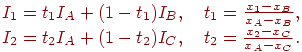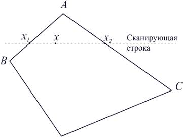 - горизонтальные координаты этих точек. Тогда в точках пересечения сканирующей строки с ребрами многоугольника интенсивности можно вычислить по формулам интерполяции: