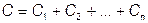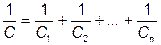 В отличие от резисторов общая ёмкость конденсаторов рассчитывается по формуле: