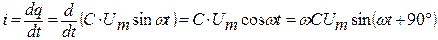 u=Umsinωt, то по синусоидальному закону будет меняться заряд q конденсатора q=C·u=CUmsinωt. Периодическая перезарядка конденсатора сопровождается протеканием через него зарядного тока.