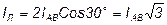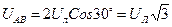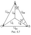 Действующее значение линейных напряжений легко определяется по векторной диаграмме) из треугольника, например АОВ: