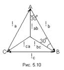 Соотношения между фазными и линейными токами легко можно определить, если для каждой узловой точки применить первый закон Кирхгофа:
