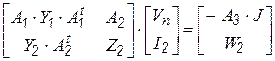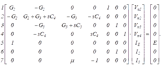 Таким образом, модифицированная узловая система представляет собой обычную узловую матрицу, построенную из ветвей первой группы и дополненную уравнениями ветвей второй группы по принципу модифицированных табличных уравнений. Вектор свободных членов соответственно представляет собой вектор эквивалентных узловых источников тока, дополненный напряжениями ветвей второй группы. Искомый вектор или вектор неизвестных содержит узловые напряжения и токи ветвей второй группы. Как следует из структуры уравнений, размерность системы равна