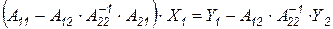 и подставляя в первое уравнение, получим укороченную эквивалентную систему уравнений понижения порядка линейной системы уравнений - блочную форму алгоритма Гаусса
