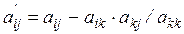 В соответствии с (6.8), (6.9) на каждом этапе исключения преобразуют все элементы остающихся на данный момент строк и столбцов матрицы
