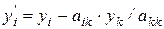Это соотношение показывает, как трансформируется матрица коэффициентов и вектор свободных членов при понижении порядка системы.