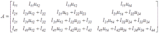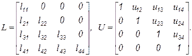 есть алгоритм разложения на треугольные матрицы – алгоритм Краута. Заметим, что текущие элементы матриц