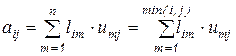 где верхний предел суммы учитывает наличие нулевых элементов в матрицах