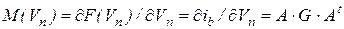 Через матрицу инциденций и линеаризованную матрицу дифференциальных проводимостей ветвей определим линеаризованную узловую матрицу проводимости