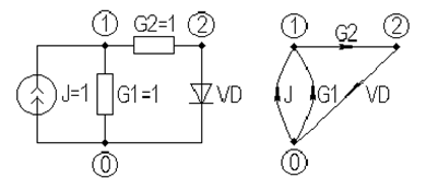 Рисунок 7.3 – Простая нелинейная цепь и ее граф