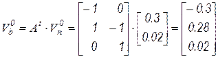 По матрице инциденций ветвей и начальному значению вектора узловых напряжений определим вектор начальных напряжений ветвей: