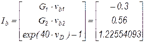 Так, диод, изображенный на схеме рис. 7.4, определит следующие элементы Якобиана и вектора правой части: