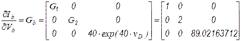 Дифференцированием сложной функции получаем матрицу Якоби узловой системы нелинейной цепи
