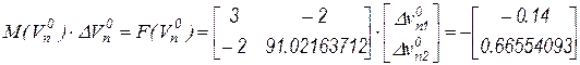 В результате система уравнений Ньютона-Рафсона на основе обобщенного узлового метода, при заданных начальных значениях примет вид