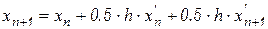 , что требует итерационного метода расчета, причем значение в предыдущей точке должно быть известно, а приближенное значение функции в искомой точке предсказано, например, по прямой формуле Эйлера. Тогда в результате итераций по известному приближенному значению функции в искомой точке