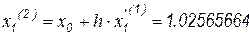2) Метод прогноза-коррекции с прогнозом по прямой формуле Эйлера и с коррекцией по обратной. Уточнение будем производить в два этапа.