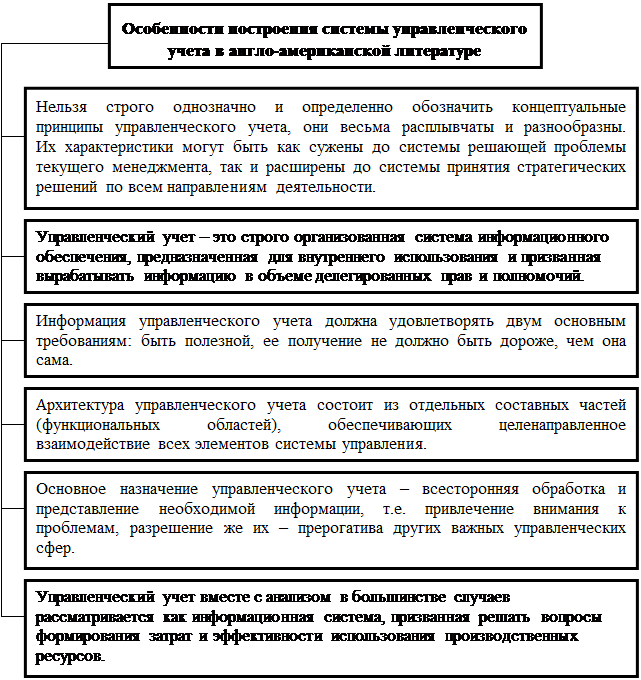 Обобщая и подводя итог многообразию мнений исследований англо-американского направления, следует выделить особенности в построении системы управленческого учета, которые представлены на рисунке 3.1.