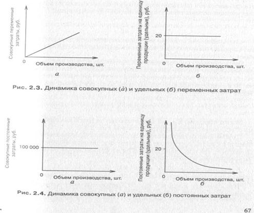 Динамика переменных затрат показана на рис. 2.3, где переменные затраты на единицу продукции (удельные) условно остаются на уровне 20 руб.