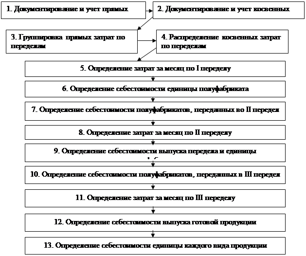 ü обобщение затрат по переделам безотносительно к отдельным заказам, т.е. калькулирование себестоимости продукции каждого передела в целом;