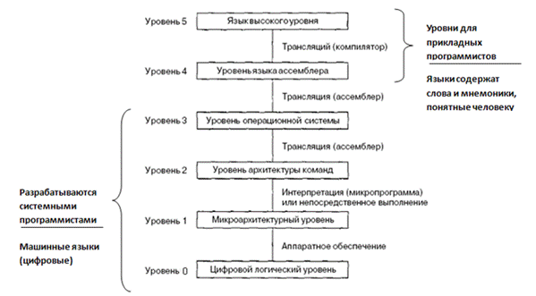 Большинство современных компьютеров состоит из двух и более уровней. Существуют машины даже с шестью уровнями.