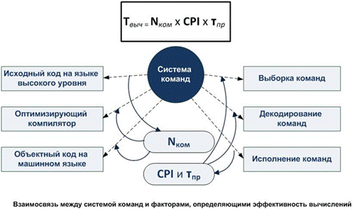 Каждая из составляющих выражения зависит от одних аспектов архитектуры системы команд и, в свою очередь, влияет на другие, что свидетельствует о необходимости чрезвычайно ответственного подхода квыбору АСК.