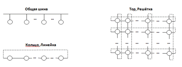 Каноническое описание модели коллектива вычислителей, основополагающие принципы ее конструкции, а также состояние микроэлектроники и уровень развития (параллельной) вычислительной математики определяют принципы технической реализации модели или принципы построения вычислительных систем (ВС). Выделим “модульность” и “близкодействие” как главные принципы технической реализации модели коллектива вычислителей.
