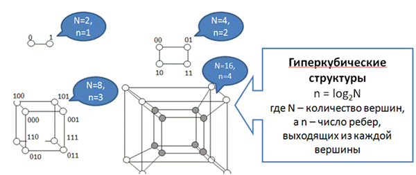 Гиперкубы или структуры в виде булевых n -мерных кубов нашли широкое применение при построении современных высокопроизводительных ВС с массовым параллелизмом. Гиперкуб, по определению, это однородный граф, для которого справедливо