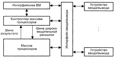 Организация систем подобного типа на первый взгляд достаточно проста. Они имеют общее управляющее устройство, генерирующее поток команд, и большое число ПЭ, работающих параллельно и обрабатывающих каждый свой поток данных.