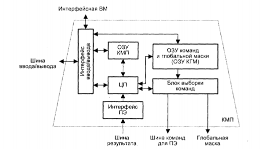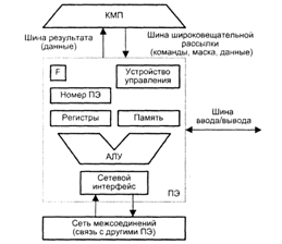 · Процессорные элементы выполняют команды, получаемые из КМП по шине широковещательной рассылки, и обрабатывают данные как хранящиеся в их локальной памяти, так и поступающие из КМП.