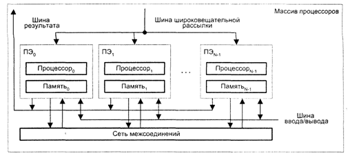· Обмен данными между процессорными элементами производится по сети соединений, в то время как шина ввода/вывода служит для обмена информацией между ПЭ и устройствами ввода/вывода.