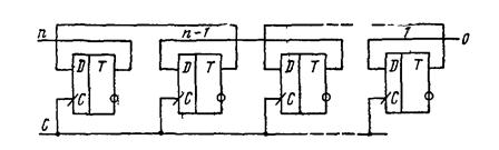 Последовательностное цифровое устройство, обеспечивающее хранение слова информации и выполнение над ним микрооперации счета, называется счетчиком. Микрооперация счета заключается в изменении значения числа С в счетчике на ±1. Счетчик, в котором выполняется микрооперация счета С=С+1, называется суммирующим, а счетчик, реализующий микрооперацию С=С - 1— вычитающим. Счетчик называется реверсивным, если реализуются обе микрооперации.