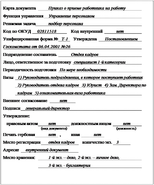 Второй этап, связанный с выбором формы табеля, базируется на анализе карт документов организации.