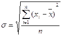 где σ – стандартное отклонение, единиц; i – индекс даты; n – число статистических данных; xi – статистическая величина, единиц;