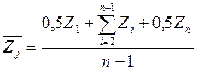 – средний уровень запаса в длительном периоде j, единиц; Z1, Zn – остаток запаса на первый и последний единичный период учета, единиц; i – индекс единичного периода учета; n – число единичных периодов учета; Zi – остаток запаса на единичный период учета i, единиц.