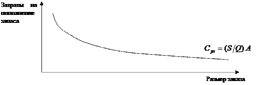 где Сс – затраты на содержание запаса, руб.; Z – средний уровень запаса, единиц; С – стоимость единицы запаса, руб.; I – затраты на содержание единицы запаса, %.