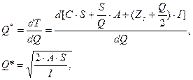 где Сс – затраты на содержание запаса, руб.; Z – средний уровень запаса, единиц; I – затраты на содержание единицы запаса, руб.
