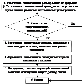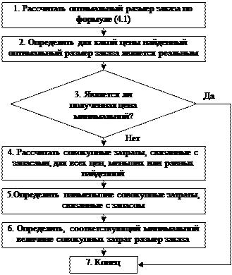 Рисунок 4.6 – Алгоритм определения оптимального размера заказа при наличии оптовых скидок и затратах на содержание запаса, зависящих от цены закупки