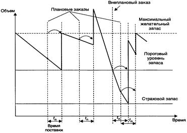 – дополнительные (внеочередные заказы), которые производятся в случае, если запас снижается до порогового уровня.