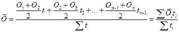 3) Если средний остаток оборотных средств необходимо вычислить за период по данным о наличии на неравноотстоящие даты, то можно использовать формулу средней взвешенной, весом будет являться период времени между смежными моментами: