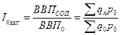 Для анализа влияния факторов на изменение объема ВВП в основных ценах рассматривают индексную двухфакторную модель зависимости ВВП от объема валового выпуска и от доли валовой добавленной стоимости в валовом выпуске (выход ВДС на 1 руб. ВВ):