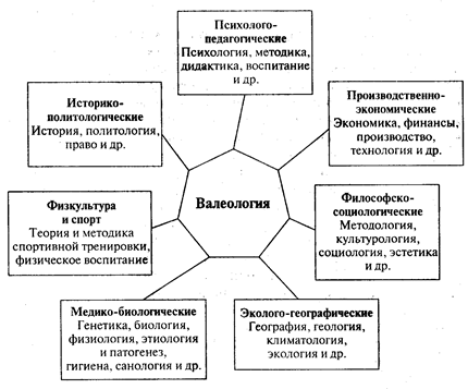 В начале этой главы уже было показано, что валеологии присущи все атрибуты науки: она имеет свой предмет, метод, объект, цели, задачи и т.д. Тем не менее, следует определить общие основы взаимоотношений валеологии как самостоятельной науки (или научного направления) с другими науками, исходя прежде всего из того, что предметом валеологии является здоровье (см. рисунок).