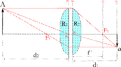 Для точки расположенной ближе или дальше (т.е. d2 другое), условие (1) не выполняется, поэтому ее изображение в плоскости P 1 будет иметь вид размытого кружка. Но если его диаметр