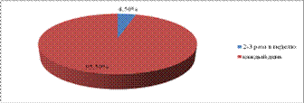 Практически все респонденты (95,5%) слушают музыку каждый день. Всего 4,5% слушают музыку 2 – 3 раза в неделю.